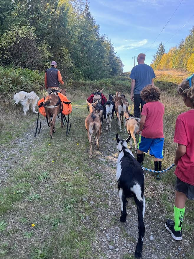 But even a nasty cold and Whooping Cough couldn’t stop me from going goat-packing! The goats at this farm are bred and trained to carry packs on hikes or backpacking trips. They all stick together and stay with their people on the trails, and they kindly carry our heavy gear and food. On Saturday, we loaded all ten of our goat buddies onto a trailer and headed to a trail that took us down to the Elwha River. We climbed with the goats down a steep hillside and arrived at a beach. The perfect-blue river folded itself between cliff sides and rocky shores, where we ate lunch, went for a freezing swim, and laid in the sun. The whole time, the goats wandered until it was time to head back up. Unfortunately, by the time it was time to hike back, I was feeling pretty rotten and had to take it extra slow. When we got to the farm, I ate dinner and went to bed at 6 pm.