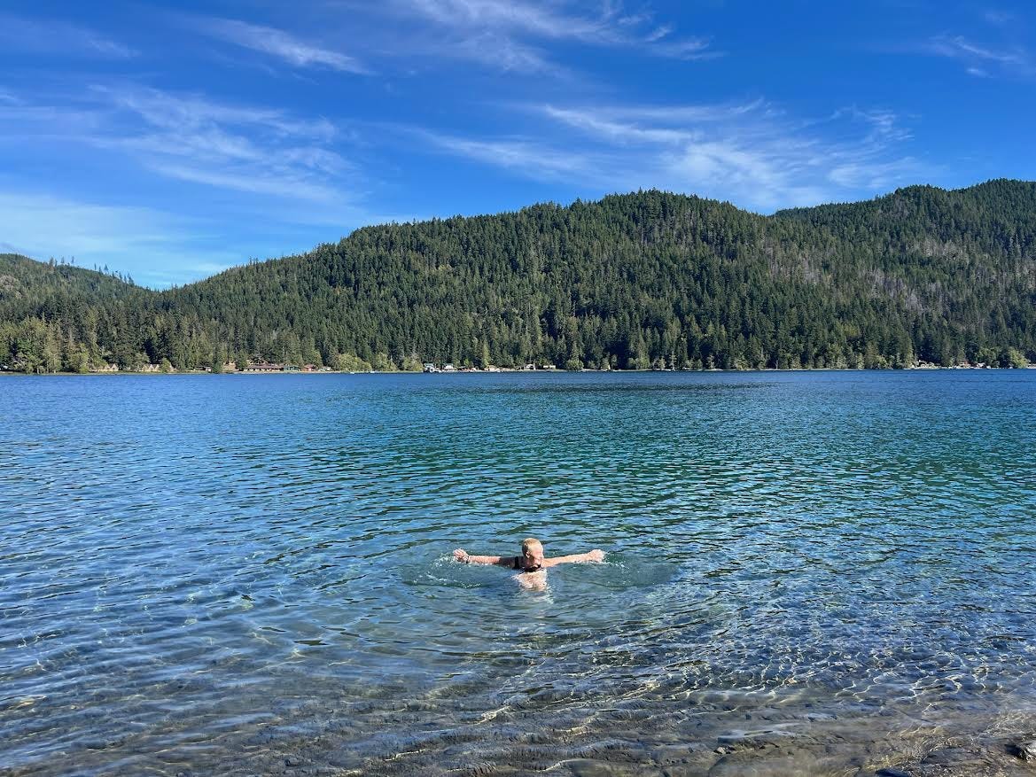 The next day, Masha and I went on an adventure to nearby Lake Crescent. We walked through moss and sun to a little beach tucked away down a side trail. It was spectacular; the sky, the trees, the mountains, the smell of warm leaves, the smell of water on clay, and an osprey over it all. When we came to the beach, we danced. It’s hard not to dance these days. As soon as possible, I jumped into the lake, swam around in the perfect water, and sat in the sun to dry. It was a beautiful time!