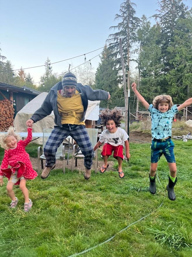 A few days into our stay, a family of wwoofers with two little boys arrived. They were so lovely. We talked about poetry, books, and food. The dad wore bracelets his kids made him, and every night I could hear the mom in their tent reading out loud to the boys before bed. They were warm and kind and made us breakfast and shared stories. The evening they arrived, Masha and I played with the boys and Lorelei in the yard. We pretended Masha didn’t know how to jump, so we all worked together to teach them and celebrated when they finally got the hang of it. We danced and sang and even formed a tongue-clicking band. We played with sound and movement and it was so, so joyful. There is something wonderful about creating magic and music with children. Seeing kids teach an adult how to jump, seeing kids conduct and be conducted, dancing like a kid. It makes me soar. One of my favorite things about working on these farms with children is seeing their parents allow them to be themselves. These kids are brave, smart, creative, and kind. They make noise, get dirty, and make mistakes without fear. And they thrive!